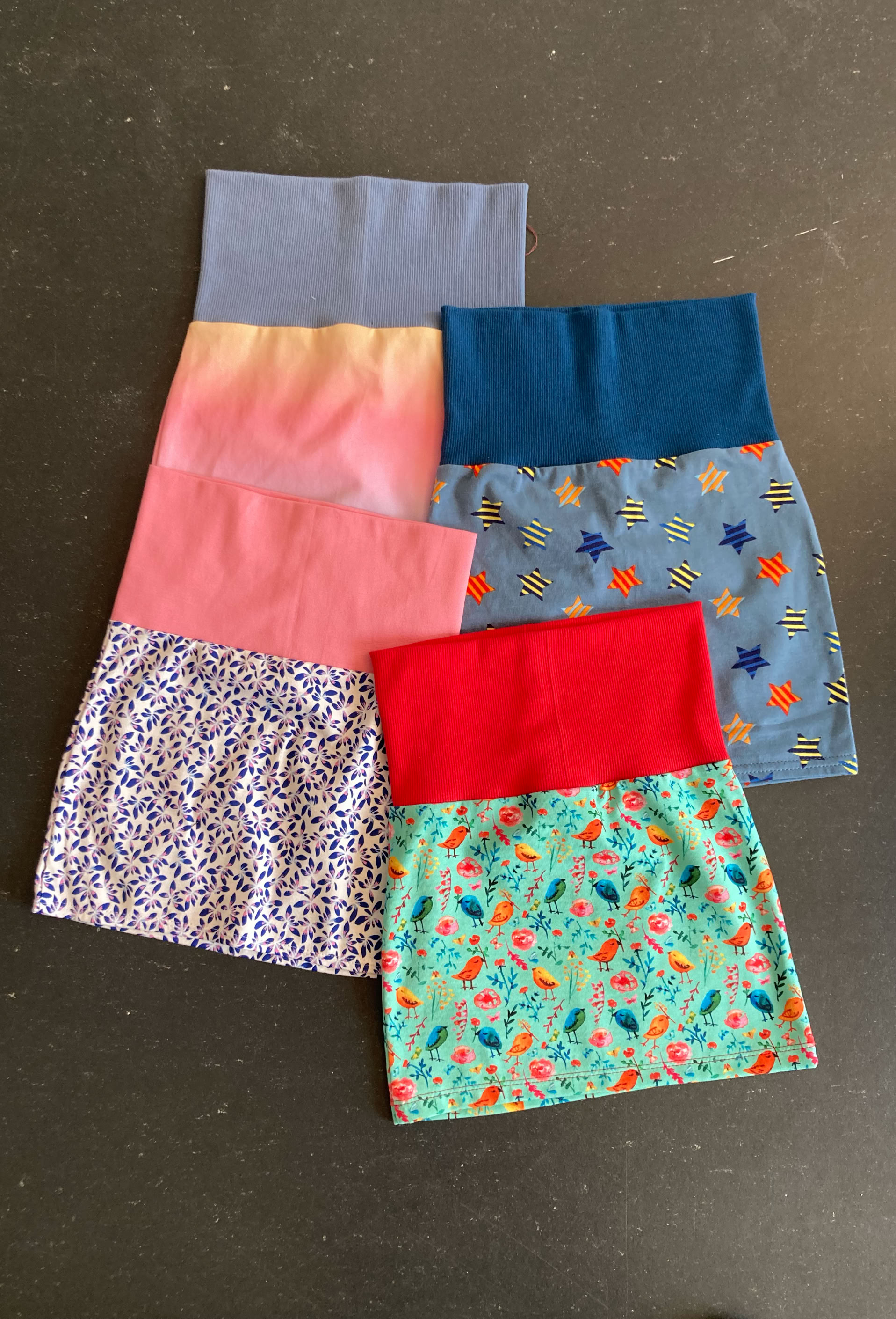 Dieser enganliegende Jupe kann über Leggings, Hosen oder einfach so getragen werden – ein Kleidungsstück fürs ganze Jahr! Der Bund ist hoch geschnitten: So kann er heruntergekrempelt oder offen getragen werden. Und er wächst über zwei Grössen mit.